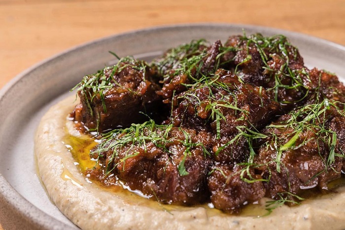 Hünkar Beğendi có nguyên liệu chính là thịt cừu hầm mềm ăn kèm sốt. Ảnh: @akis_petretzikis
